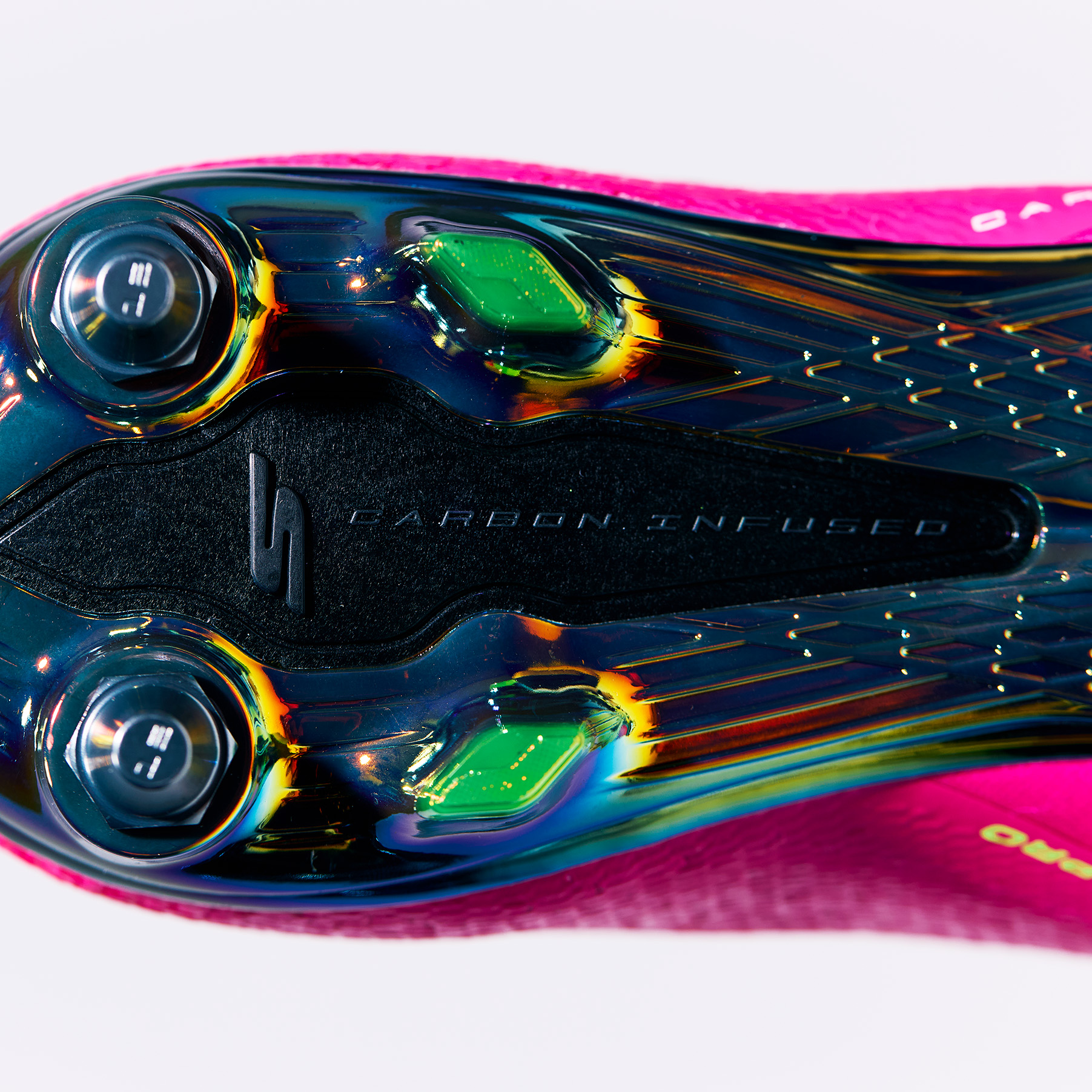 Patent-pending carbon-infused forefoot plate offers an extremely high stiffness-to-weight ratio, which promotes stability and next level energy return.